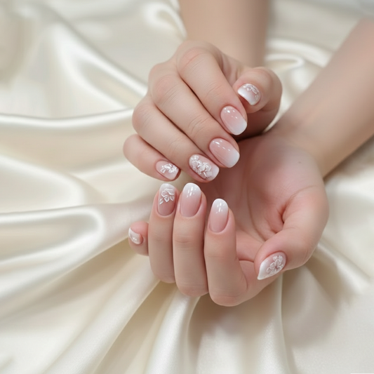 Discover understated luxury with this ethereal milky white nail set. Featuring a seamless nude-to-white ombré...