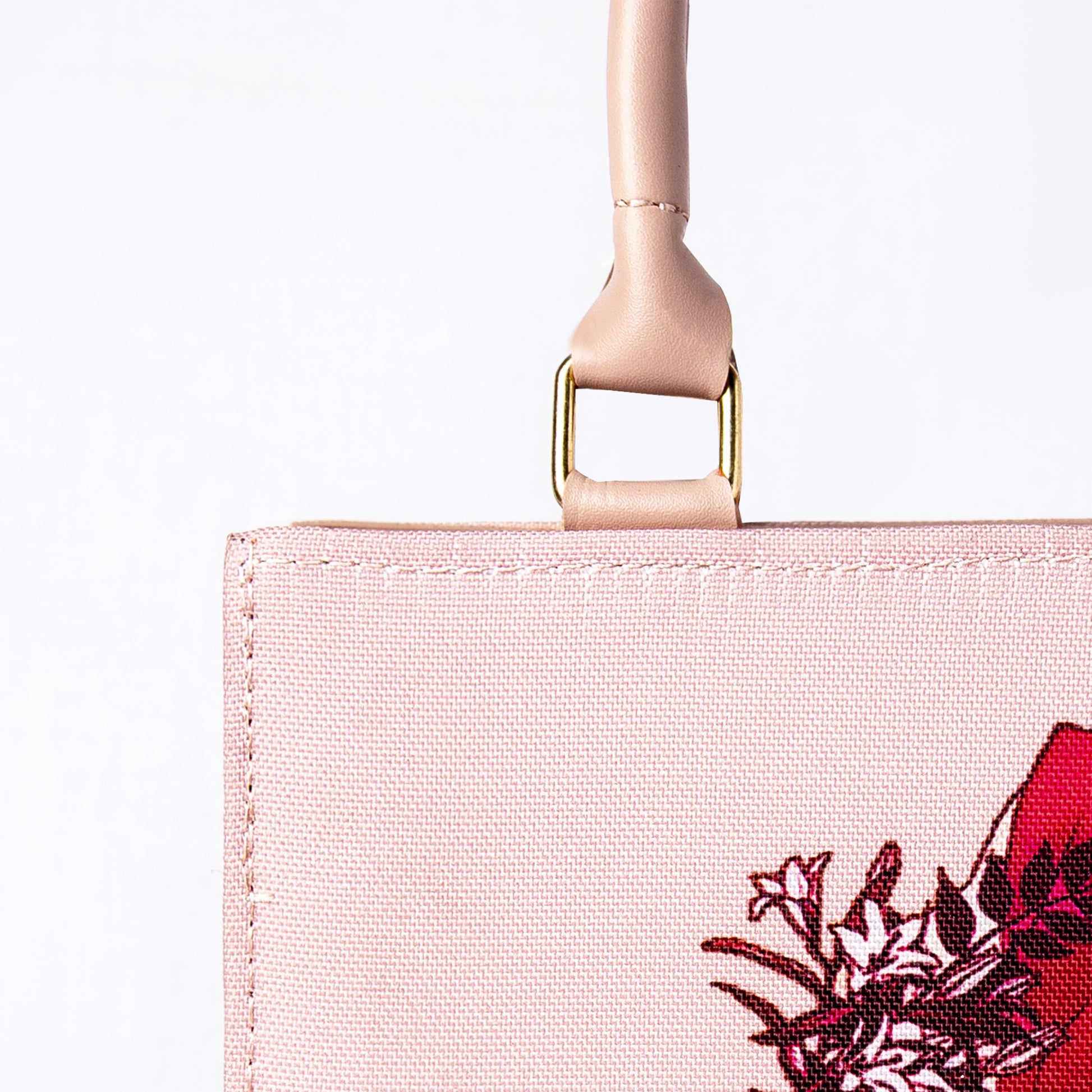 Distinctive Design: Crafted with a structured, boxy silhouette, this bag holds its shape perfectly while offering ample space for your daily essentials—phone, wallet, keys, and cosmetics. The gentle pink hue provides a feminine backdrop for the vibrant red print, while the matching pink handles and gold-tone hardware add a touch of luxury to the overall look.