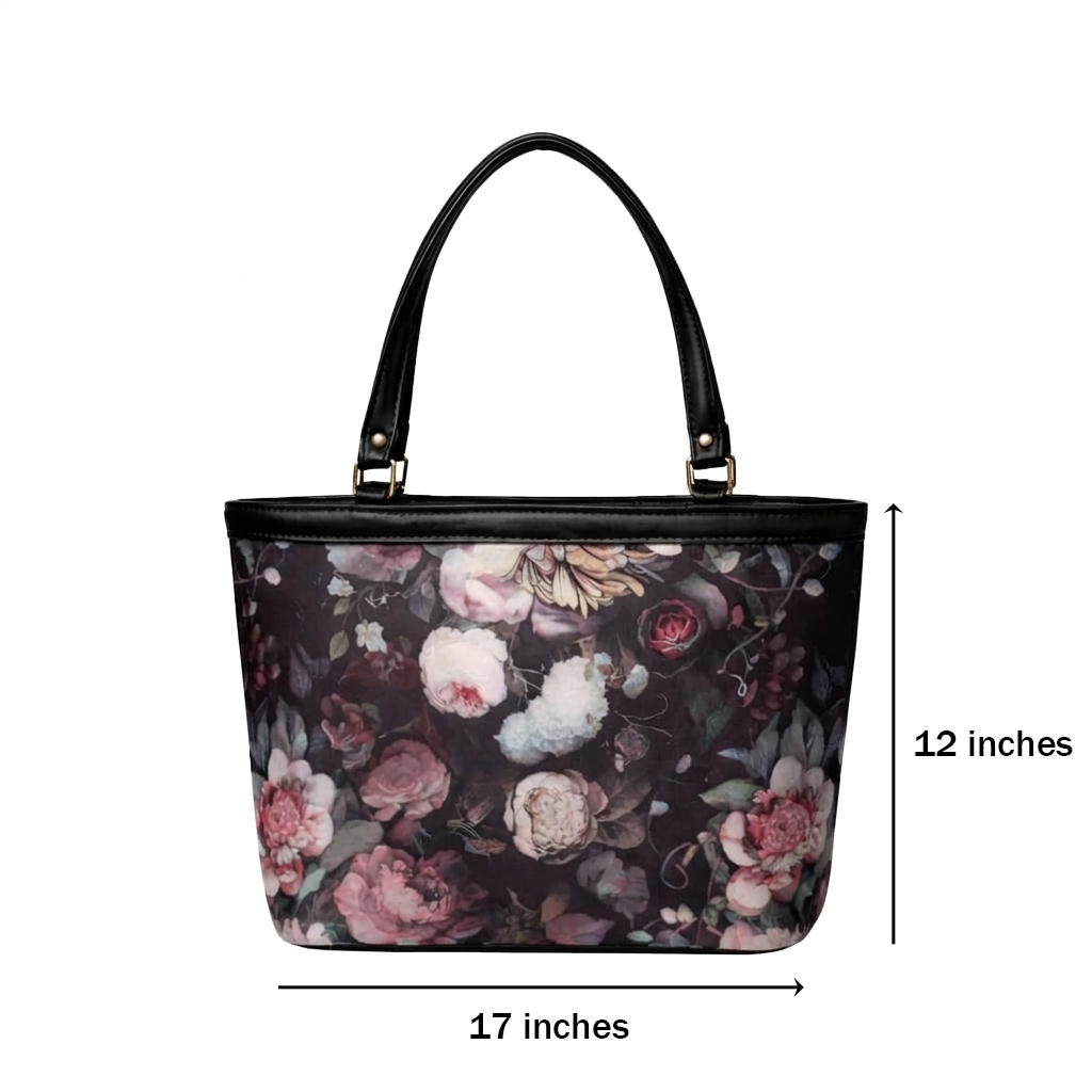 Elevate your everyday style with this sophisticated tote, designed to blend artistic flair with practical functionality. Featuring a deep, moody floral print with intricate botanical details, this bag serves as a versatile statement piece for any wardrobe.