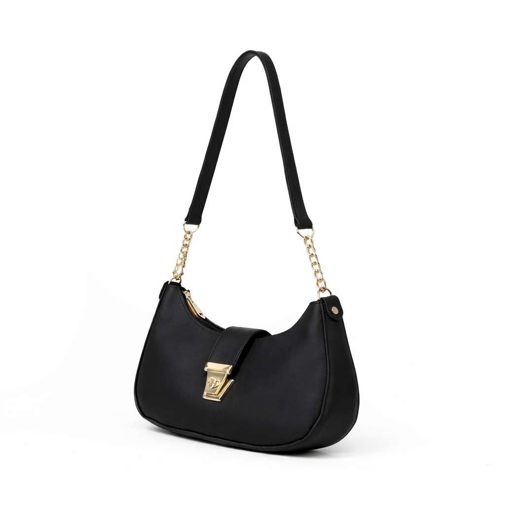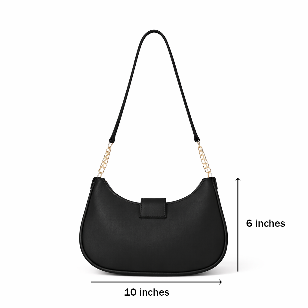 Elevate your daily ensemble with this sleek midnight black Half-Moon Curved Bag. Featuring a contemporary half-moon silhouette, this piece flawlessly blends modern minimalism with sophisticated detailing. It is the ideal accessory to enhance a casual day-look or add a refined touch to your evening attire.