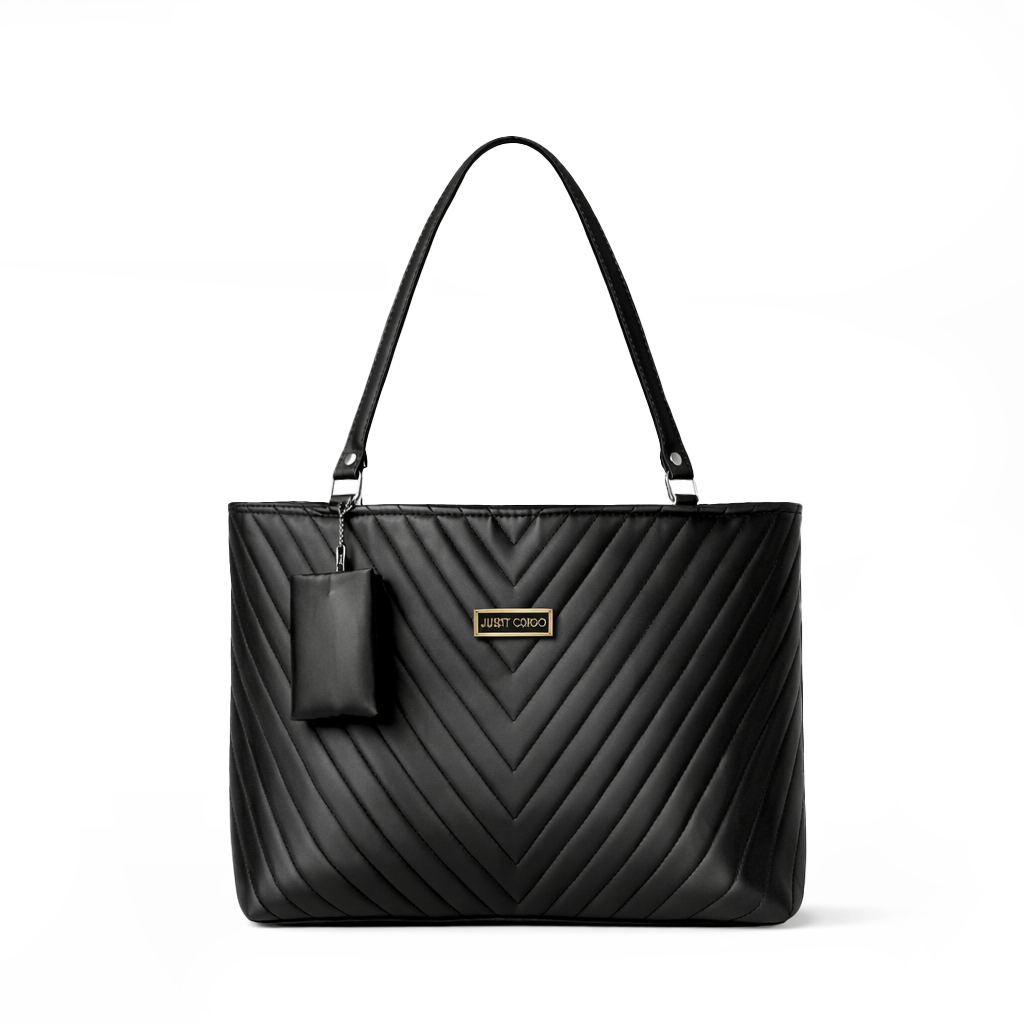 Elevate your everyday style with this chic black quilted tote bag. Featuring a sophisticated V-shaped stitching pattern, this bag combines classic elegance with modern texture. It is the perfect companion for work, shopping, or a casual day out, offering both style and practicality with a premium feel.